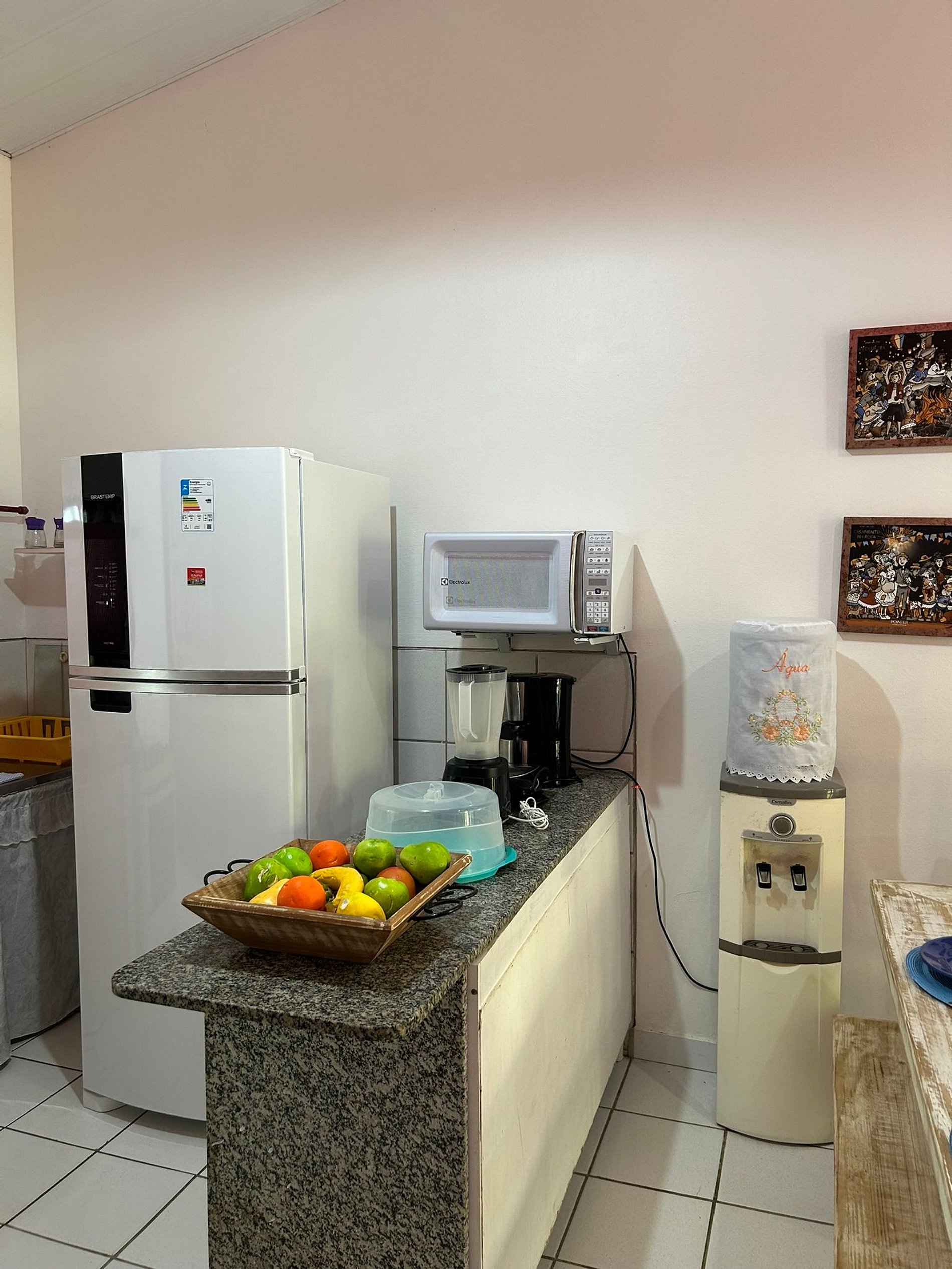 Disponibilidade de utensilios excepcional! Cadeiras, guarada-sol e cooler foi uma surpresa agradável! Varanda muito aconchegante e bem mobiliada. Decoração do chalé de muito bom gosto. Geladeira bem maior que em muitas acomodações.