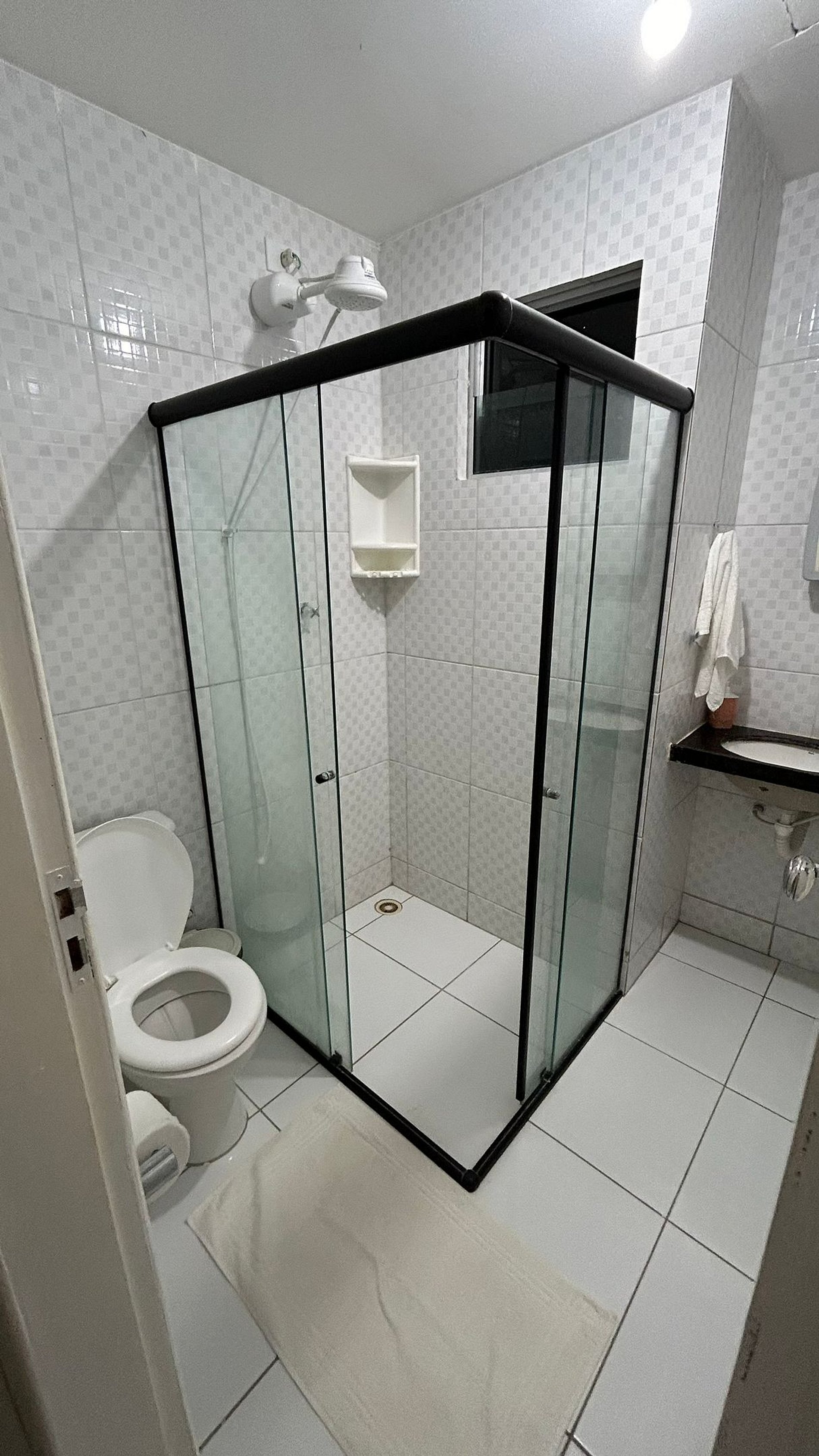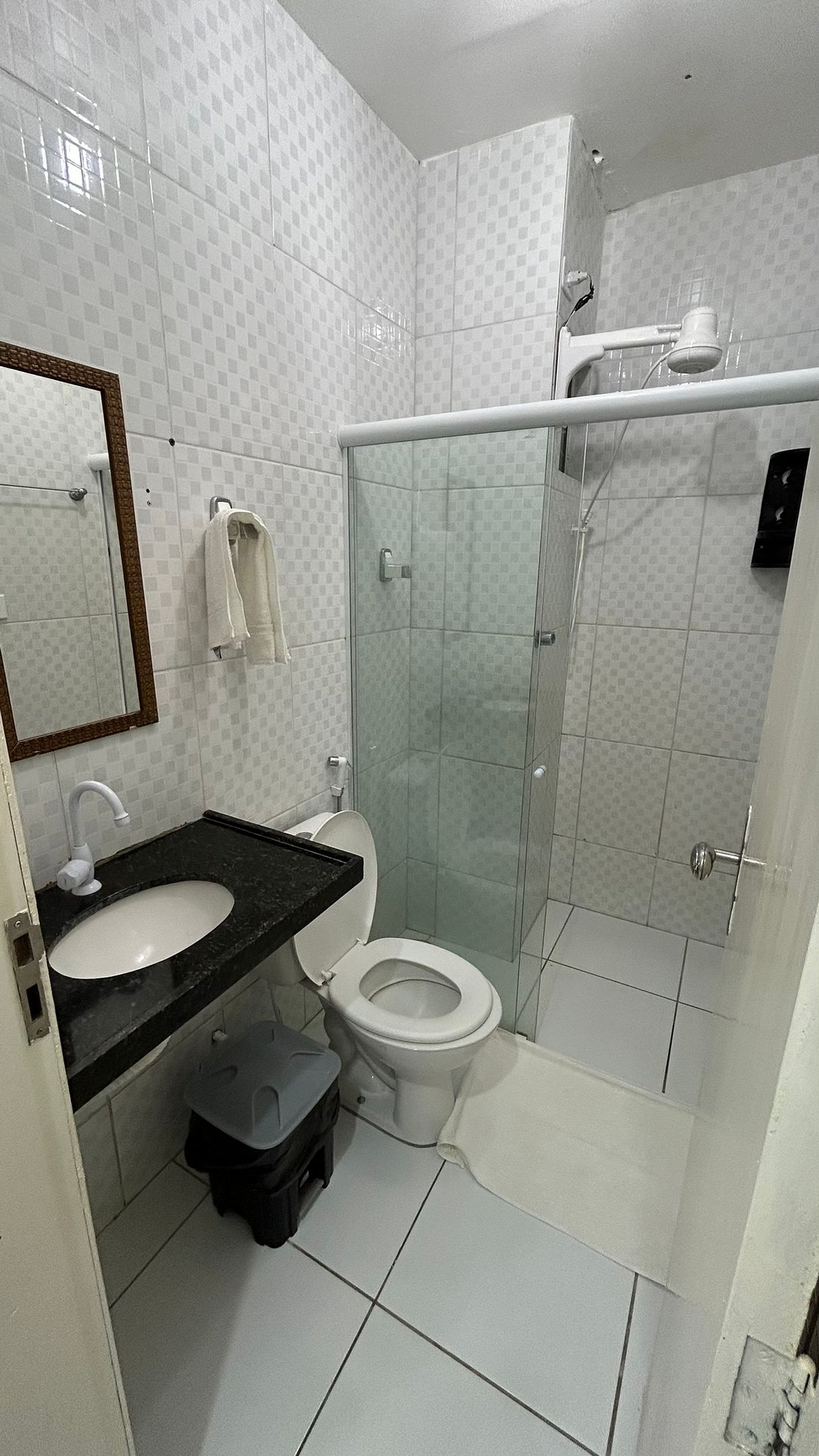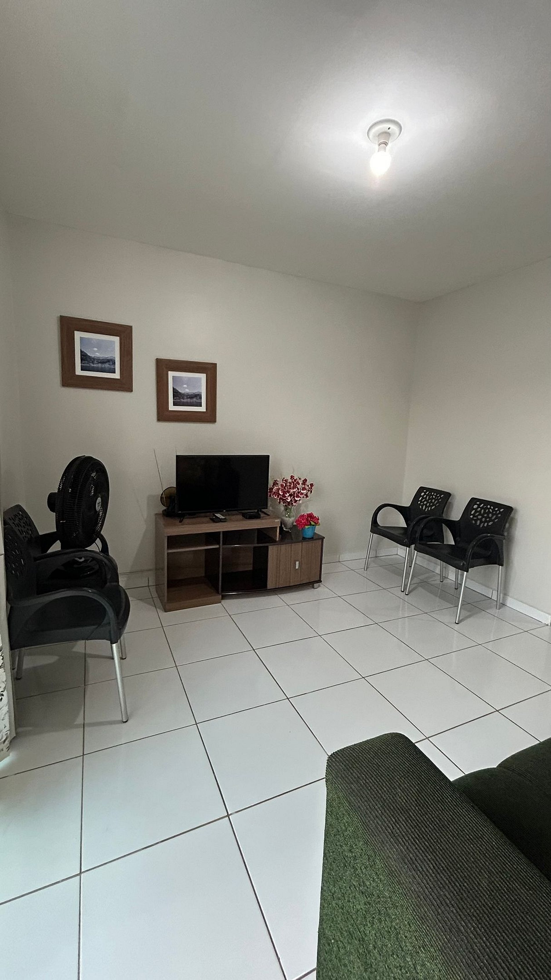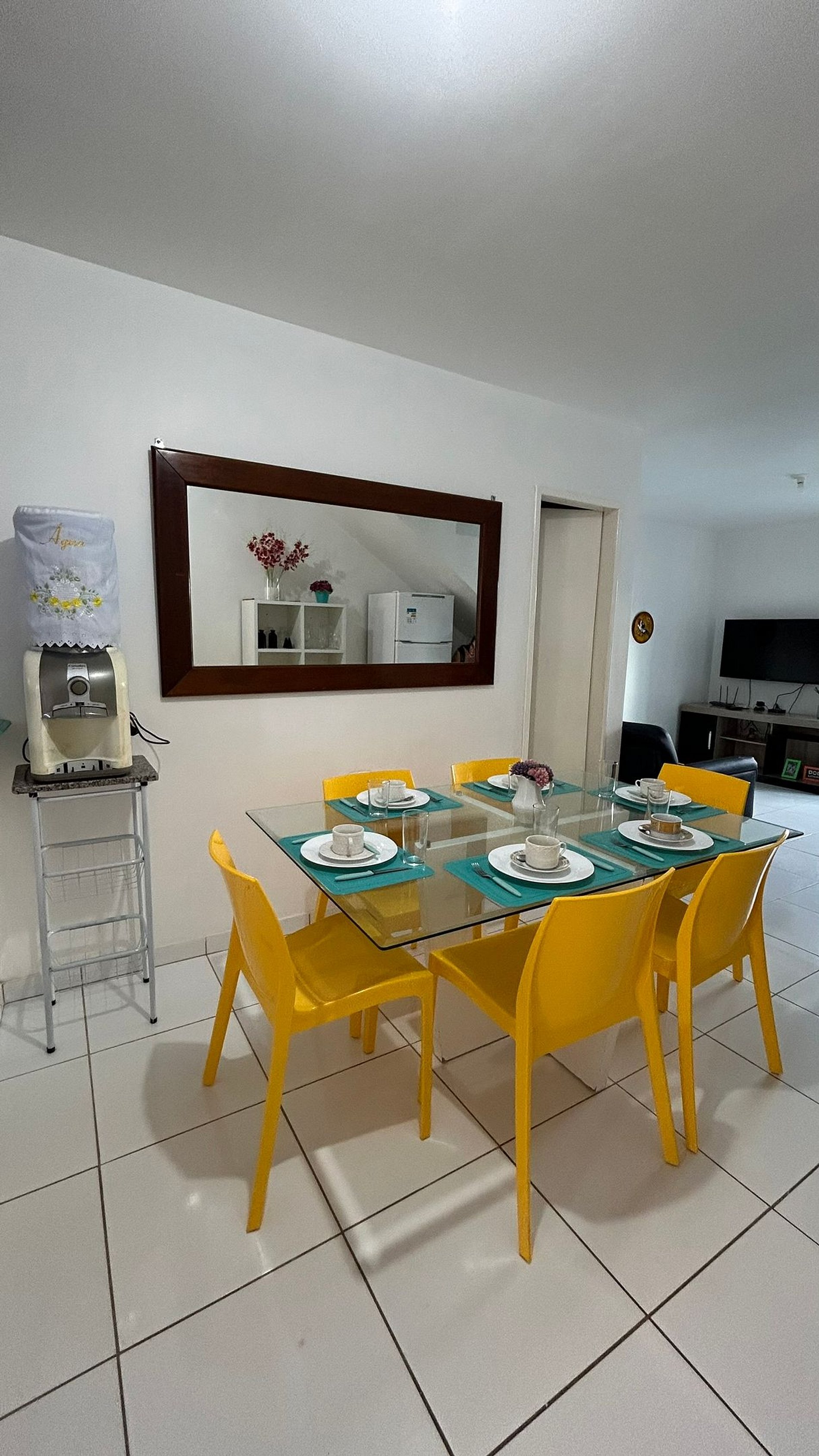 O Flat possui três quartos com ar-condicionado, sendo uma suíte com camas novas e super confortáveis uma de casal e outra de solteirão e guarda roupa casal, os outros quartos possuem camas de casal e outra cama de solteiro cada, ainda colocamos a disposição de nossos hóspedes 3 colchões para reforço, possui também um banheiro social e um lavabo, sala de jantar, sala de estar, cozinha completa com todos equipamentos e utensílios e varandas na sala e suíte.